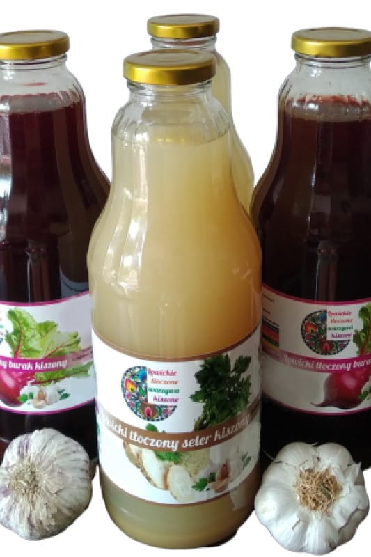 Producent Tłocznia "Łowickie Tłoczone Warzywa Kiszone"Zakwas z BURAKÓW + SELER kiszony 750ml, "Łowickie Tłoczone Warzywa Kiszone" z naturalnej kiszonki